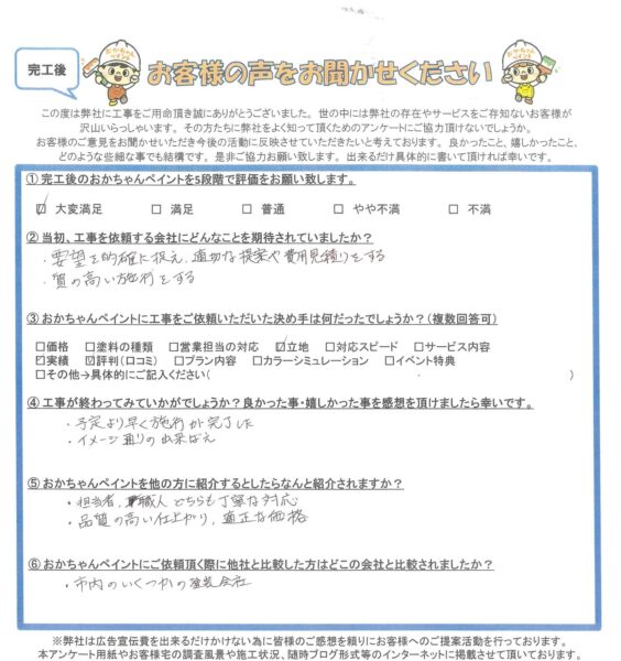 明石市大久保町M様邸より、「イメージ通りの出来栄え」お声を頂きました ~完工後アンケート~