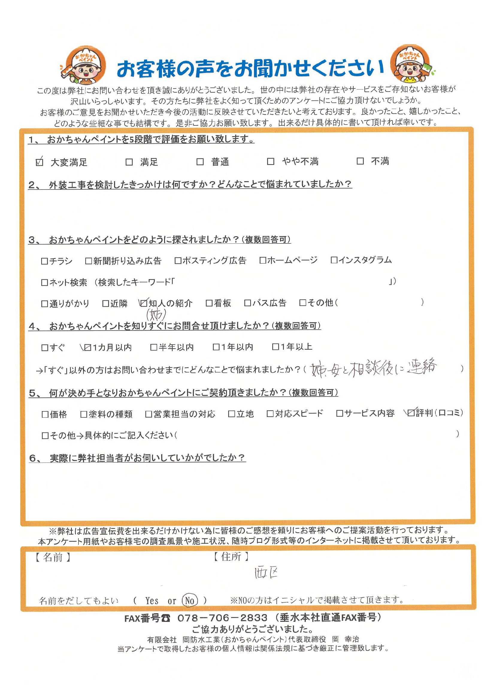 神戸市西区のF様より じっくりとご家族に相談後にご契約いただきました。 ~ご契約後アンケート~